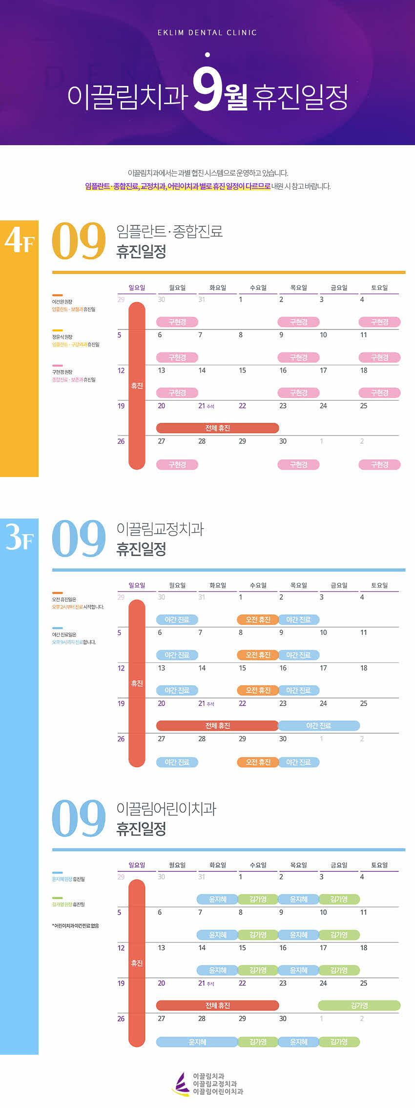 [이끌림치과 9월 휴진일정 안내]
